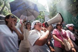 Por su parte, Rodolfo Arrechea, de ATE Salud y delegado general en el Hospital Rivadavia, subrayó: “Estamos acá y en todos los puntos del país exigiendo la inclusión a la carrera profesional de los Licenciados”. Sin embargo, indicó: “Esta lucha viene de hace tiempo, diciéndole al Gobierno nacional que no aceptamos el presupuesto del FMI, que implica recortes y la desaparición en la CABA de cuatro hospitales que se van a fusionar en el complejo del Hospital Muñiz, por eso también rechazamos la degradación del Ministerio de Salud”. Por ello, cerró: “Esta es una medida más del gran plan de lucha que venimos llevando desde ATE junto a todas las organizaciones del movimiento por el derecho a la salud”.