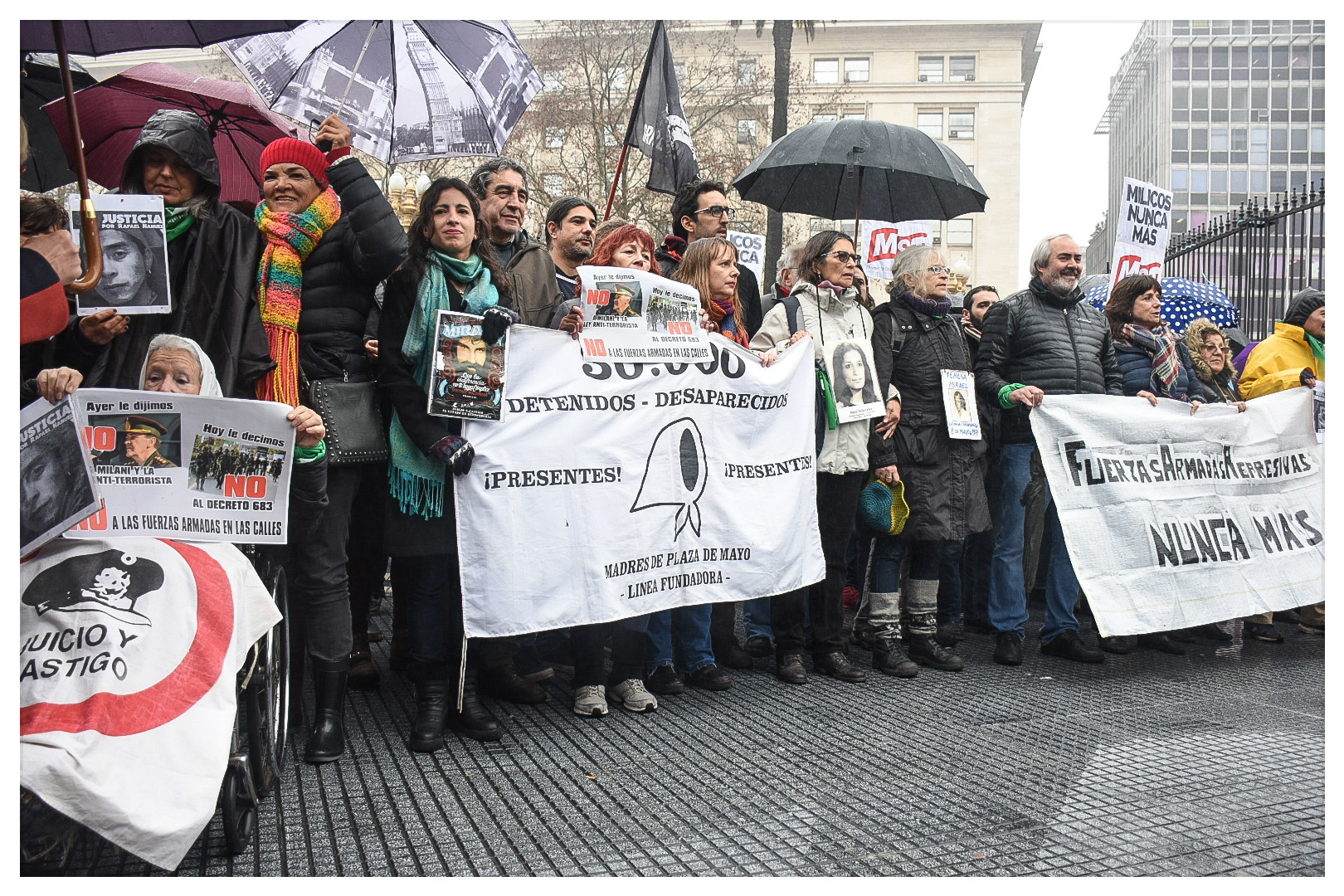 En el acto también se leyó el documento del Encuentro Memoria, Verdad y Justicia, donde se repudia el “decreto vergonzoso, presentado en Campo de Mayo, que habilita a las Fuerzas Armadas a la represión y a reubicar a los militares para disponer de la Gendarmería para el control social”.