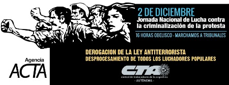 Por eso desde la CTA Autónoma seguiremos en la calle reclamando por más libertad, democracia e igualdad y por la derogación de la Ley Antiterrorista como estandarte normativo del autoritarismo de Estado con el objetivo de sofocar la protesta social y la lucha por el reconocimiento y cumplimiento de todas las conquistas producto de años de lucha. No movilizamos en contra del nuevo gobierno sino, entre otras reivindicaciones, en defensa por lo que es nuestro, por salarios dignos, 82% móvil, eliminación del impuesto al salario y porque la lucha por nuestros derechos jamás puedes ser judicializada en democracia.