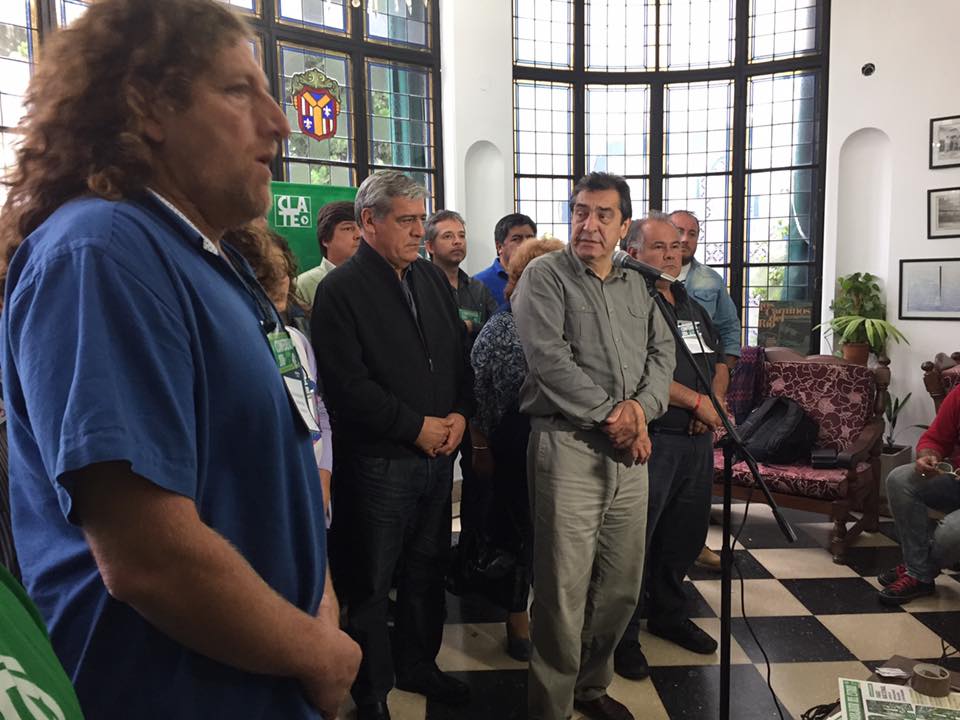 «El Confederal fue convocado para definir líneas de acción para los próximos años y para poner fecha a la medida de fuerza que realizaremos a mediados de noviembre, lamentablemente un grupo de dirigentes convocados por los Secretarios Generales de Capital Federal, Daniel Catalano y de Santa Fe, Jorge Hoffmann junto con barras bravas de diferentes hinchadas irrumpieron violentamente en el hotel Bauen, rompiendo vidrios e intentaron impedir que el Confederal se realizara», comenzó explicando Hugo «Cachorro» Godoy, Secretario General de ATE nacional.