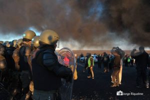 «La CTA Autónoma repudia el accionar de la Gendarmería que desalojó este domingo una protesta de trabajadores y trabajadoras en la Ruta 3, a unos 12 kilómetros de Río Gallegos, con un operativo que utilizó un camión hidrante y personal de un destacamento móvil y provocó dos detenciones y heridas a manifestantes, seis de los cuales fueron derivados a un hospital con golpes y afectados por gas lacrimógeno».