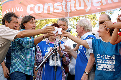“La jubilación es una lucha de todos los trabajadores; de los que están jubilados ahora y de todos los que se van a jubilar. Hoy el 90% cobra la mínima de $3164, la mitad de lo que vale la canasta básica de un adulto mayor. Por eso estamos pidiendo el 82 % móvil para todos los jubilados y el manejo del PAMI por los propios trabajadores”, ratificó Marcos Wolman a la vez que festejó que los 5 patriotas cubanos que estaban presos en la imperialista EEUU, hoy están nuevamente en la Cuba socialista.