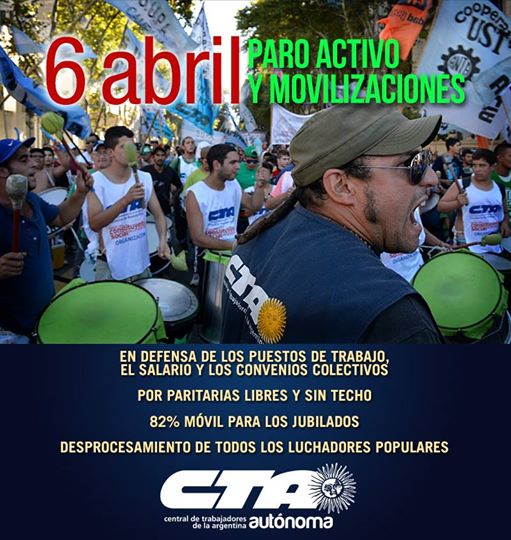 Ante la falta de respuestas por parte del gobierno de Mauricio Macri a los reclamos de los trabajadores, la CTAA de Capital exige a través de esta medida, el fin de las políticas de ajuste, de los despidos, de la criminalización de la protesta. Además reclama la convocatoria a paritarias libres y sin techo, y el 82 % para los jubilados.