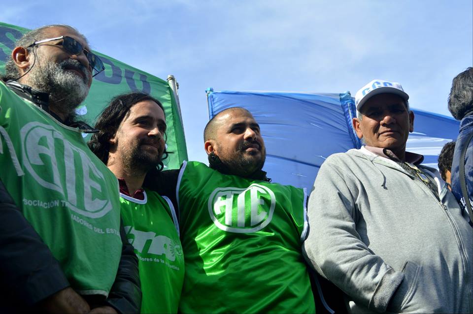 Al llegar a la Plaza de Mayo quien abrió el acto fue Hugo “Cachorro” Godoy, secretario General de ATE Nacional, quien ante los 25 mil trabajadores y trabajadoras presentes enunció: “Hoy con claridad decimos que, si el Gobierno no cambia el rumbo de privilegiar a unos pocos y afectar a la mayoría, este paro que protagonizamos tantas organizaciones va a crecer, se va a hacer más contundente, más firme y más decidido. El paro nacional no se pide, se construye, va calentándose en cada asamblea, en cada lugar de trabajo, y en cada esquina de la calle inundada hoy, el domingo y todos los días por venir. Vamos hacia ese Paro Nacional, construyéndolo en unidad. Los privados, los públicos, los jubilados, los activos, los trabajadores de país vamos a cambiar el rumbo y construir una argentina para todos”.