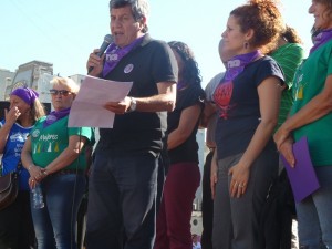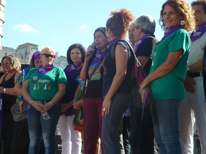 Desde un camión escenario fueron haciendo uso de la palabra cada una de las compañeras que participaron en la creación de este Proyecto. Estuvieron presentes allí Liliana Leyes, secretaria de Género de CTA Santa Fe; Silvia León, secretaria de Organización de ATE Nacional; Marta Galante, Directora del Departamento de Género de ATE Nacional; Jorgelina Sosa, secretaria de Género de CTA Capital; Liliana Gómez, secretaria de Género CTA Buenos Aires; Patricia Pineyro, secretaria de Género de AAPM; Mónica Beresovsky, secretaria de Género de CICOP; Natalia Robledo, secretaria Administrativa de CTA Buenos Aires; Nina Brugo, Secretaria de Género de Unidad Popular; Hugo “Cachorro” Godoy, secretario Adjunto ATE Nacional; Oscar De Isasi, Secretario General de CTA Buenos Aires y José Luís Matassa, secretario General de ATE Capital.