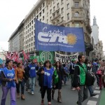 El amplio abanico de organizaciones que forman a la CTA de la Capital se concentraron con sus bombos, trompetas y banderas en el Obelisco porteño. Desde allí caminaron hasta la sede de la Jefatura de Gobierno porteño, para llevar su solidaridad con quienes mantuvieron el acampe por diez días con la firme convicción de pelear por lo que es justo, trabajo para las cooperativas de la Central porteña en los barrios.
