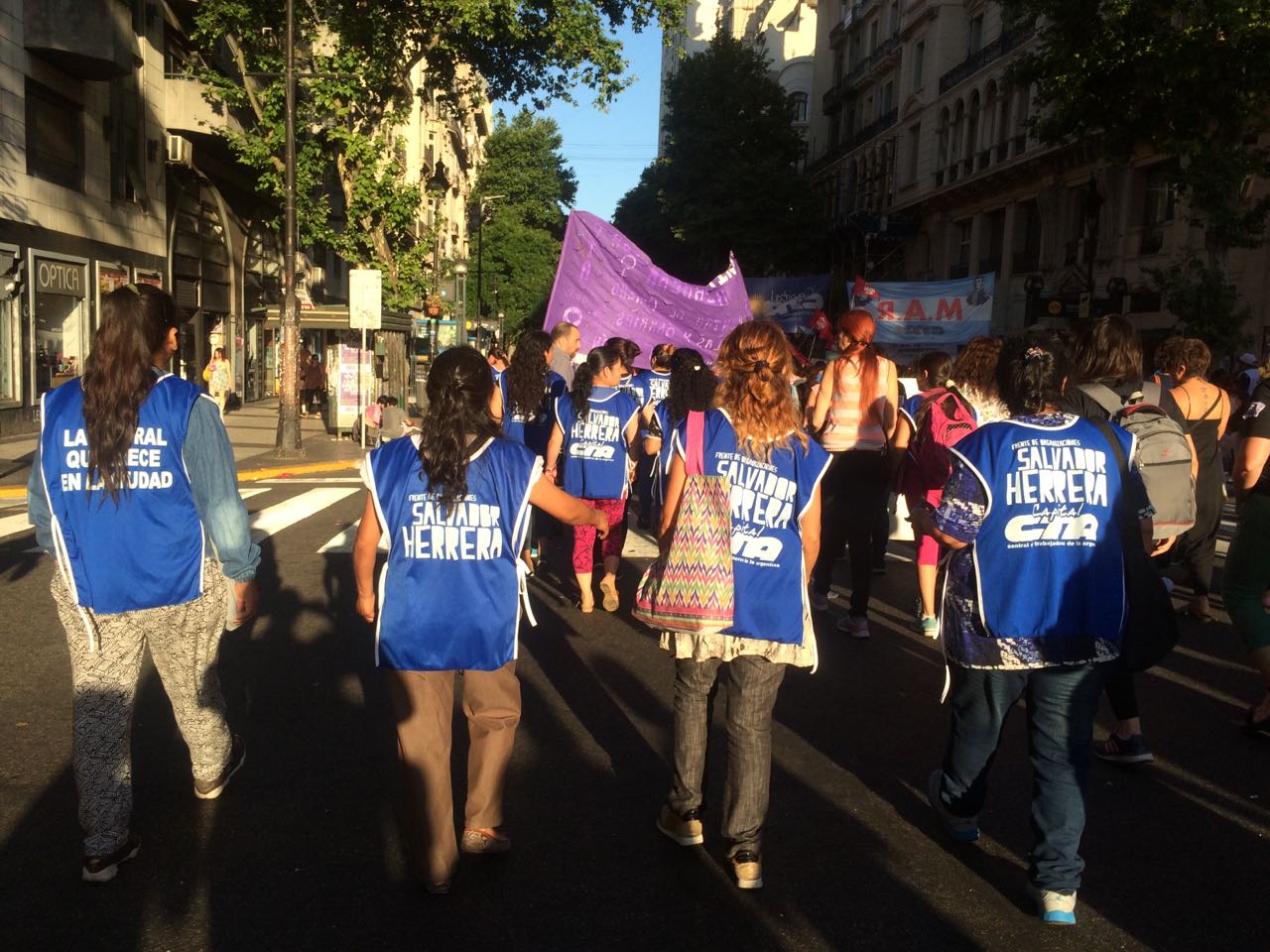 Dagna, del Frente de Organizaciones Salvador Herrera comentó: “Nosotras venimos desde la Villa 21-24, donde hace poco tiempo a Elida la mató el marido adelante de sus dos hijos. Hicimos una marcha, participaron muchos vecinos y estuvo bueno, porque hay que empezar a concientizar a otras mujeres, niños y hombres también, para que vean la realidad de lo que está pasando. Nosotras nacimos para ser libres.” Adelina, referente de Género en el Movimiento de Ocupantes e Inquilinos (MOI-CTA) agregó: “Hoy particulamente exigimos que se termine con la violencia de género y con los femicidios, y que vayan presos a todos los hombres que golpean y violan a las mujeres.”