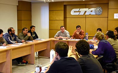 En la reunión estuvieron presentes: El secretario de Relaciones Internacionales, Adolfo “Fito” Aguirre; Mario Barrios y Diego Ledesma de la Unión Solidaria de Trabajadores (UST-CTA); Dora Martinez del Bloque Organizativo-Gremial; Bruno Dobrusin; Gonzalo Manzullo; Sabrina Haboba y Joaquín Turco de la Secretaría de Relaciones Internacionales; Bettina Muller del Instituto de Estudio y Formación (IEF-CTA); Adrián Ruiz, Director de la Secretaría de Derechos Humanos y Emmanuel Gorjon de la Secretaría de Relaciones con los Pueblos Originarios, entre otros.