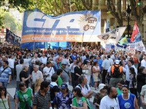 En el marco de la jornada nacional de lucha, la CTA, la Multisectorial y la Coordinadora Sindical Clasista marchan esta tarde a Plaza de Mayo para reclamar un bono de fin de año, la reapertura de las paritarias, que se cese con la criminalización de la protesta social y que se frene la entrega de los bienes comunes.