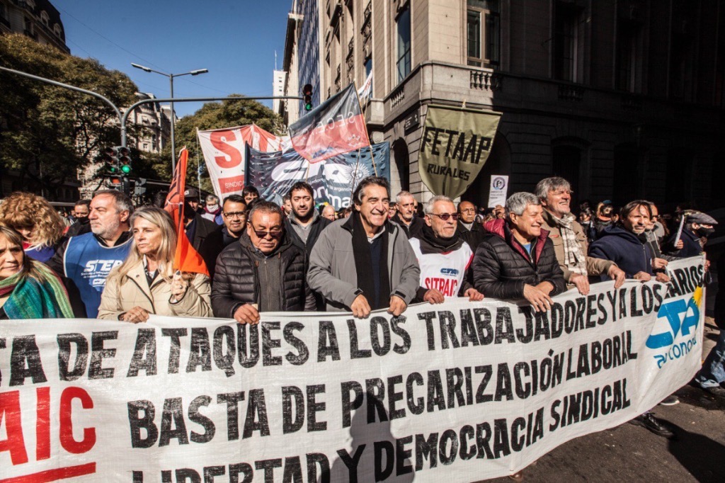“Los convoca a que construyamos entre todos un gran paro general”, concluyó Grosi ante el aplauso de la multitud que acompañó la movilización.