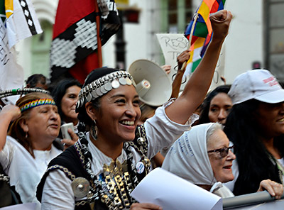 “Las 36 naciones originarias tenemos memoria, y nos acordamos muy bien del genocidio sangriento que permitió que se constituya este Estado racista que no es Latinomaricano, sino Indoamericano. Es clave que hoy seamos las mujeres quienes venimos a proponer el Buen Vivir como derecho, queremos construir las bases nuevas entre los pueblos indígenas y el pueblo argentino”, agregó Moria Millán.