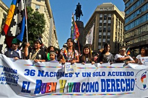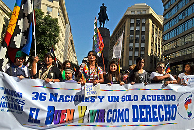 Bajo la consigna de “Caminamos para ser, somos porque caminamos”, mujeres de 36 nacionalidades originarias del territorio argentino junto a numerosas organizaciones del campo popular, se movilizaron al Congreso de la Nación para llevar el Proyecto de Ley por el Buen Vivir.