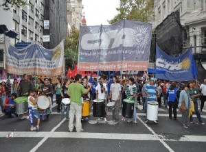 Los tambores de Bombatuque le pusieron mística a la marcha que contó con la presencia de miles y miles de personas, organizaciones sindicales, sociales, barriales, territoriales, políticas, culturales y de derechos humanos. Hubo también representaciones teatrales y musicales a lo largo del camino que va del Congreso a la histórica plaza de Mayo.