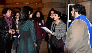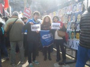 Mónica Mexicano de la Asamblea de Mexicanos en la Argentina recordó a “Cachito” Fukman, y dedicó la jornada de lucha a su memoria. Luego leyó la carta que a la tarde entregaron a Malcorra en la movilización hacia la Cancillería. Allí se rechaza la visita de Peña Nieto y “juzgamos inaceptable que el gobierno argentino sostenga o profundice relaciones diplomáticas, políticas y económicas con un gobierno que ejecuta una política sistemática de violaciones a los DDHH y de agresión contra su propia población crecientemente desprovista de garantías y derechos colectivos e individuales”.
