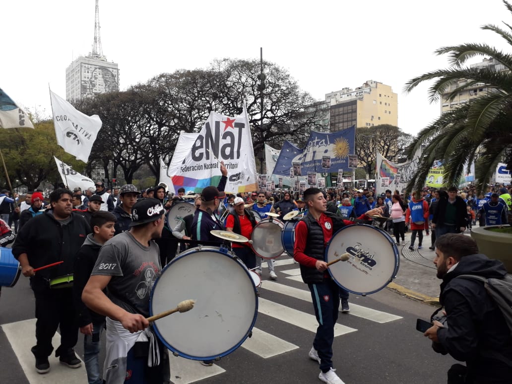 “Nuevamente, como está sellado a fuego en nuestro ADN -porque día a día los que estamos hoy acá somos los que le ponemos el pecho a las balas; las y los que hacen que gracias a los merenderos, a los comedores, a las cooperativas, nuestros pibes y nuestras pibas tengan un presente diferente- esta Central, esta Federación Nacional Territorial, está dispuesta a seguir peleando y no tenemos ningún tipo de miedo de reafirmar que si el Gobierno que viene no está dispuesto a resolver el hambre de nuestros pibes, nos va a encontrar en la calle reclamando por la Emergencia Alimentaria y por un país diferente”, concluyó Giulliani, frente a Desarrollo Social, momentos antes de comenzar a marchar hacia la Plaza de Mayo, junto a las organizaciones sindicales.