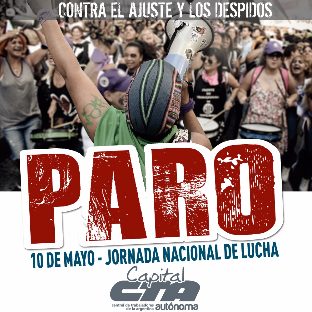 Tal como fue anunciado esta mañana, en Conferencia de Prensa, la CTA Autónoma convoca a participar del Paro Nacional, con movilizaciones en todo el país contra los despidos, el ajuste, los tarizafos y la criminalización de la protesta. Por la reapertura de las paritarias, las reincorporaciones y la libertad y la democracia sindical.