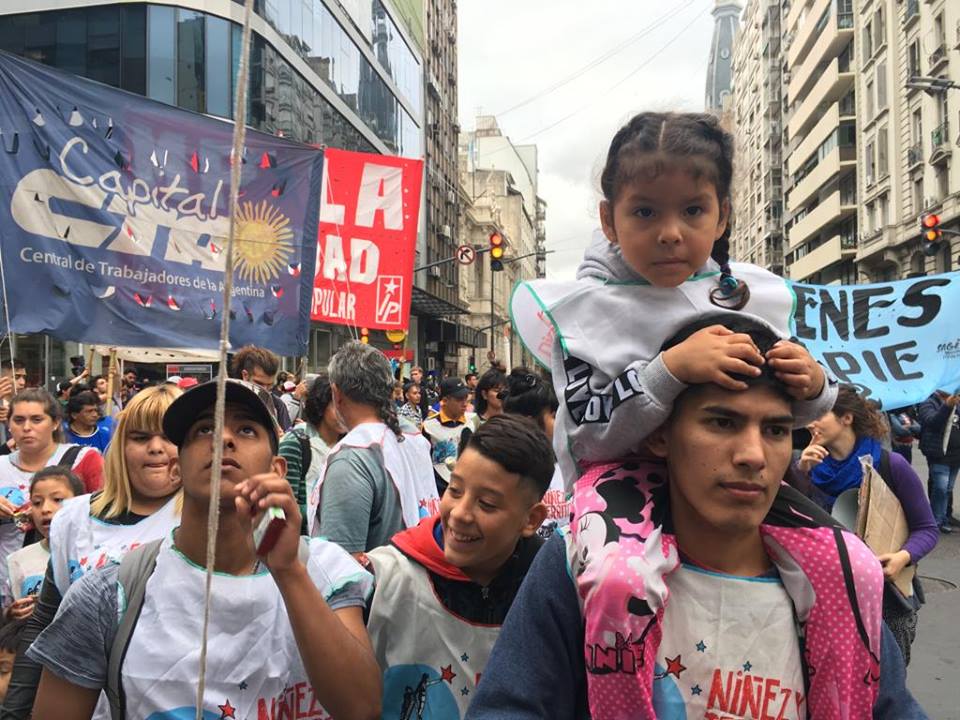A su turno, Nicolás Rodríguez Saa, miembro de la Mesa de la Central porteña, camino al Congreso explicó: “Estamos en la segunda Marcha de la Gorra con Niñez y Territorio, la CTAA Capital y distintos frentes y espacios territoriales, denunciando que no queremos más el abuso policial ni que se muera un pibe más en nuestros barrios. Sobre todo, en este contexto actual, donde el Gobierno de Macri, Larreta y Bullrich le dan riendas sueltas a las fuerzas de seguridad para reprimirnos y matarnos con el objetivo de imponer sus acuerdos financieros con el FMI y los grandes sectores de la economía. Hoy nos encontramos en la calle marchando, por nuestros pibes y pibas, todas las organizaciones que día a día intentamos construir junto a ellos y ellas una realidad mejor en los barrios”.