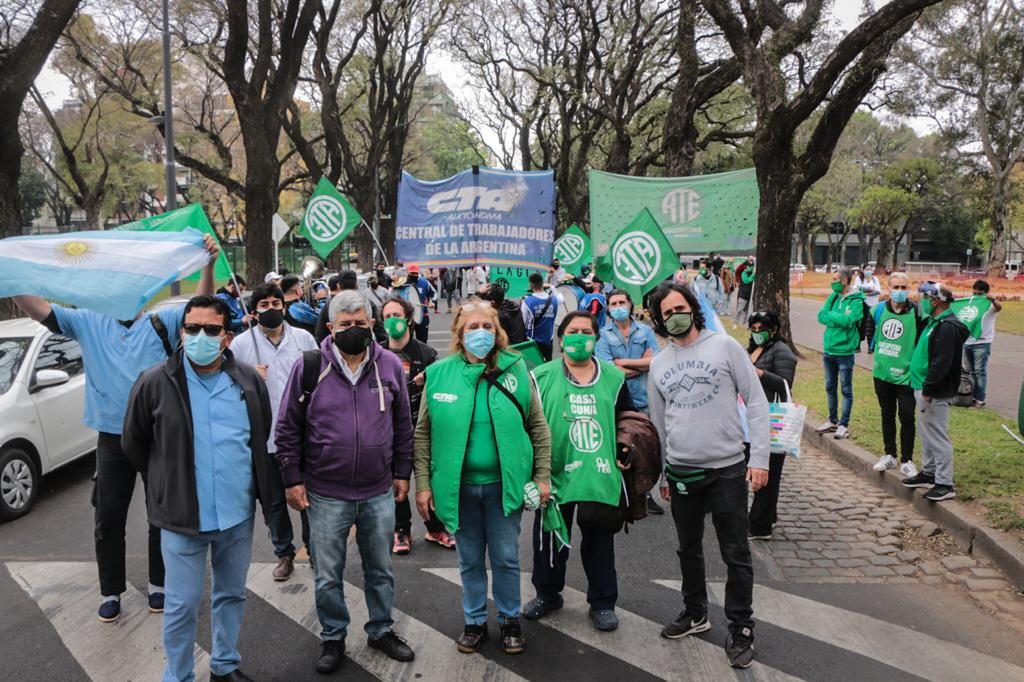 Al mismo tiempo, esta mañana las y los trabajadores de la Salud, nucleados en la Asociación Trabajadores del Estado (ATE-CTAA), se concentraron frente a las puertas de la nueva sede de la Jefatura de Gobierno de la Ciudad de Buenos Aires, ubicada en el barrio porteño de Parque Patricios. Allí, la Central porteña acompañó a las y los compañeros, quienes bajo la consigna “Enfermería somos profesionales”, exigieron el pase a planta permanente, aumento salarial de emergencia y la renovación de 1.500 contratos originados para enfrentar la pandemia.