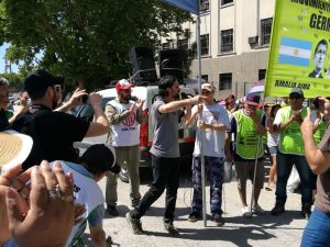 En un pequeño acto, Pablo Spataro, secretario General de la central porteña, agradeció a todas y todos los presentes y expresó: «Una vez más venimos, ante la injusticia de ver cómo el Gobierno de Macri sigue planificando el país de la desigualdad, que sigue alentando que se beneficien unos pocos: el Fondo Monetario Internacional, los acreedores internacionales, el sector financiero, el sector agroexportador, y otros más. Mientras que las y los laburantes, la pasamos muy mal porque los precios suben y nuestros salarios están cada vez más bajos o estamos desempleados. La única solución que tenemos los laburantes es hacer escuchar nuestras voces. Por eso es muy importante que cada uno de los sectores de trabajo nos encontremos en solidaridad con las y los trabajadores del territorio porque juntos tenemos que salir a defender, no sólo la fuente de trabajo de las y los compañeros que fueron injustamente despedidos , sino también la posibilidad de tener un Estado que garantice y defienda los derechos de las mayorías populares.