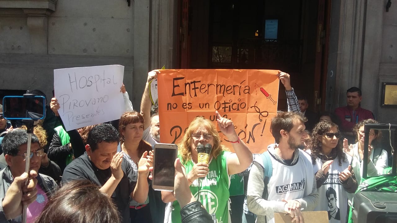 Por su parte, Tránsito Fernández, Enfermera del Hospital Moyano, Delegada de ATE y Congresal Nacional de la CTA Autónoma, explicó: “Los médicos estudian en las universidades, pero nosotros con sólo ver a los niños sabemos lo que les sucede. Generalmente, llegan con enfermedades relacionadas a la mala o poca alimentación, una problemática que no quieren ver. Hoy, en vez de estar trabajando, tenemos que encontrarnos en la puerta de la Legislatura pidiendo por favor que no voten este decreto basura, que nos deja afuera de la labor que tanto luchamos para capacitarnos y poder asistir a este pueblo que tanto lo necesita, ya que ellos no lo hacen”.