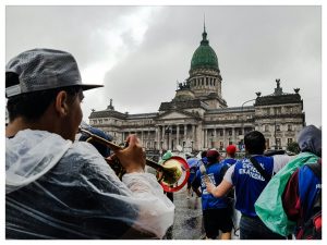 Cuando las condiciones climáticas parecían complotarse para que los compañeros y compañeras se desanimaran para llegar al Congreso de la Nación, la fuerza de la unión en la lucha los alentaba a continuar. Fue así que lograron sumarse a los compañeros ya presentes en el Congreso convocados por la CTA Autónoma en el día del Paro Nacional de los trabajadores y trabajadoras.