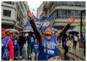 El reclamo se centró en la necesidad de que se declare la emergencia alimentaria para la Ciudad de Buenos Aires. A pesar de las condiciones climáticas, los trabajadores y trabajadoras hicieron escuchar su pedido con bombos y platillos.