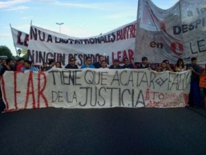 Castillo agregó que “lo que es importante que sepan todos los trabajadores es que si se impone la posición de la empresa, hay vía libre para producir despidos masivos. Hay encuestas que aseguran que el 17% de las empresas pretende reducir personal en 2015. Por eso lo de Lear es importante, porque si se le para la mano a la empresa dificultará los despidos en otras. Acá se está luchando por los puestos de trabajo de los compañeros, pero también para parar la prepotencia patronal”.