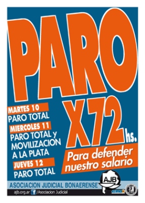 De acuerdo a los mandatos de las asambleas realizadas el viernes 6, la Asociación Judicial Bonaerense (AJB-CTA) realiza un nuevo paro de actividades de 72 horas, que se inicia hoy martes 10 de abril.