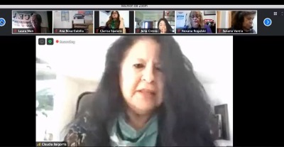 En representación de la CTA Autónoma, habló Claudia Baigorria, primera oradora de la conferencia, quien agradeció el esfuerzo compartido en la construcción de la agenda de las mujeres trabajadoras con perspectiva de clase “aún en esta etapa de crisis sanitaria mundial”.