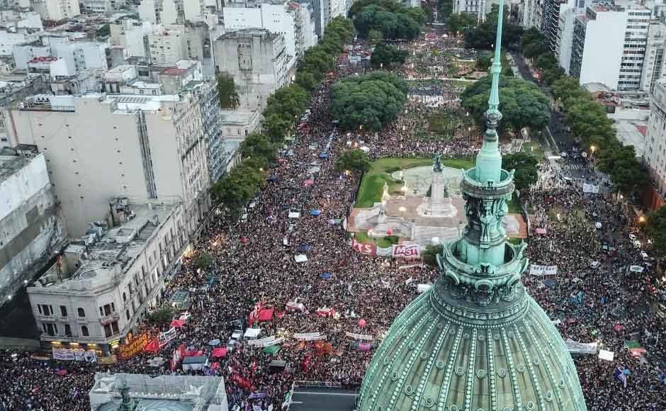 En la ciudad de Buenos Aires, la ola verde se hizo presente en las calles y desde muy temprano columnas de compañeras de distintas organizaciones populares inundaron el centro porteño con intervenciones callejeras, cánticos, carteles, bailes y sus cuerpos pintados con alegorías a las demandas del movimiento feminista. La fuerza acumulada en todos estos años de organización, de lucha y de ganar las calles y plantarse en los lugares de trabajo y el territorio, se vio claramente potenciada en las calles en el día de hoy y muestra al movimiento feminista como una fuerza imparable.