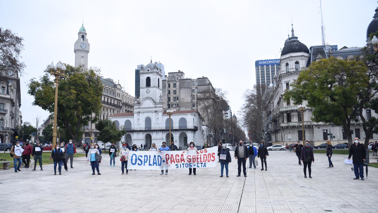 Por su parte, Alejandro Bassignani, secretario General del SiTOSPLAD-CTAA, explicó: “Hoy los trabajadores de la OSPLAD, convocados por el SiTOSPLAD nos hicimos presente en la Casa de Gobierno para presentar un petitorio solicitando una audiencia al Presidente de la Nación para que el Estado Nacional se haga cargo de buscar soluciones a la problemática que está atravesando la Obra Social Docente, sus trabajadores y sus afiliados. Estamos en una situación límite en medio de una pandemia. Los afiliados sin prestación de servicio y los trabajadores sin cobrar su salario. Somos esenciales para trabajar, pero no esenciales para cobrar”