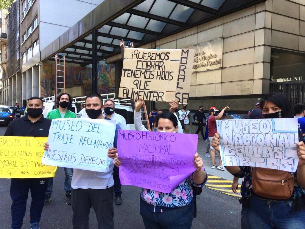 En la manifestación de hoy no solo se exigió a la empresa Moral que pague los salarios en tiempo y forma, sino que además se sostuvo nuevamente que es el Ministerio de Cultura de la Nación quien debe garantizar la de trabajo y los salarios, porque es allí donde hace años las y los trabajadores de maestranza y mantenimiento desarrollan sus tareas.