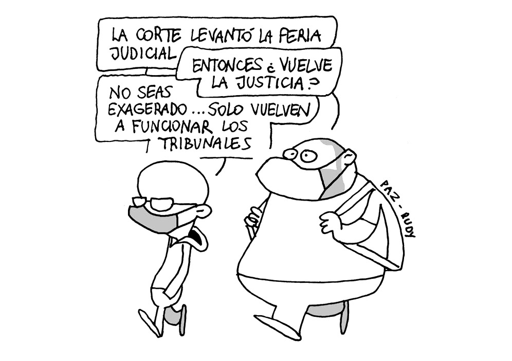 Motivada por la pandemia de COVID 19 y con justificadas razones de salud, la Corte Suprema de Justicia de la Nación dispuso a partir del 20 de marzo de este año una Feria Judicial Extraordinaria. Con fecha 20 de julio de 2020, la Corte dispuso el levantamiento de la Feria para la propia Corte y para las Cámaras de Segunda Instancia y a su vez anunció que con fecha 26 de julio comenzarían a laborar los juzgados de Primera Instancia.