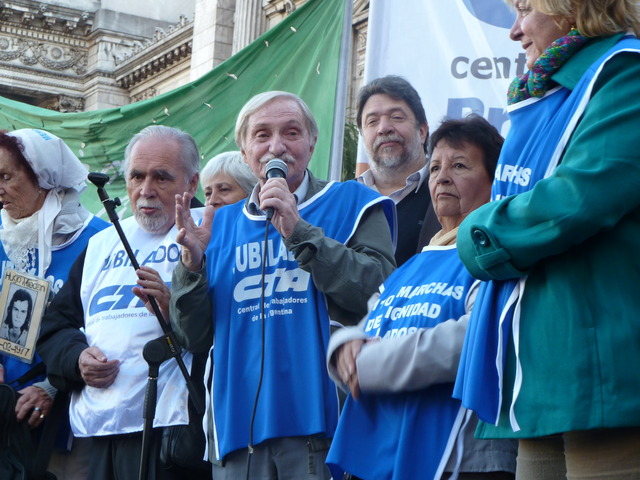 Por lo tanto, vamos a seguir peleando. Lo que estamos seguros es que hoy vamos a esta marcha, y la seguiremos antes y después de las elecciones. Vamos a continuar la lucha, porque se va a ir intensificando. Está la demostración de cómo se está descargando la crisis capitalista, sobre los trabajadores activos y jubilados en el mundo y, por lo tanto nosotros no estamos exentos en eso y por el contrario, va a ser necesario más lucha, más unidad y organización para lograr las reivindicaciones, y generar conciencia en cada lucha, de la necesidad de acumular fuerzas para construir una verdadera alternativa política para luchar contra el sistema capitalista y por el socialismo.