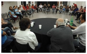 Ante un gran numero de compañeros pampeanos, el plenario conformado por todas las seccionales provinciales y la conducción provincial, Micheli, desnudó la situación nacional de entrega y empobrecimiento en la que estamos inmersos los argentinos: “nos venden un país del primer mundo y las comunicaciones nos funcionan como si fuéramos de sexto mundo, entregan nuestros recursos como si dieran caramelos y hacen funcionar las empresas del Estado sólo para enriquecer a los empresarios”.