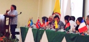 En este sentido, Pablo Micheli tomó la palabra en representación de todas las delegaciones internacionales, saludando el informe del presidente de la CUT, Luis Pedraza, y augurando un buen debate en este nuevo Congreso. Micheli repudió además la violencia y los asesinatos de compañeras y compañeros de la CUT, que desde 1986 hasta la fecha suman 3700 personas. Por otra parte, saludó el proceso de paz entre las FARC y el Gobierno colombiano que se está desarrollando en La Habana: «debe haber paz con justicia Social y sin explotación», subrayó.