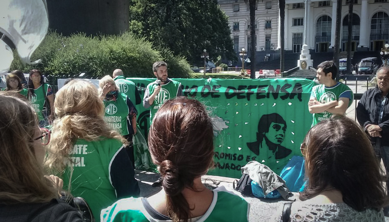 En el día de la fecha, los trabajadores y trabajadoras realizaron un acto a 3 meses de los despidos en el Ministerio de Defensa. En el acto estuvieron presentes la CTA A Capital; María del Carmen Verdú, abogada y referente de la Coordinadora contra la Represión Institucional y Policial (Correpi); compañeros y compañeras de varias Juntas Internas de ATE y diferentes organismos de DDHH, para exigir la reincorporación de los despedidos.