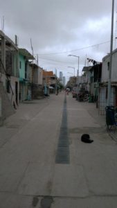 El barrio no cuenta con una red pluvial entubada ni con sumideros. Los excedentes pluviales escurren por las calles a través de una canaleta central. En reiterados informes técnicos alertamos respecto al diseño de las canaletas a cielo abierto indicando que no presentan pendientes adecuadas y sus dimensiones son reducidas.