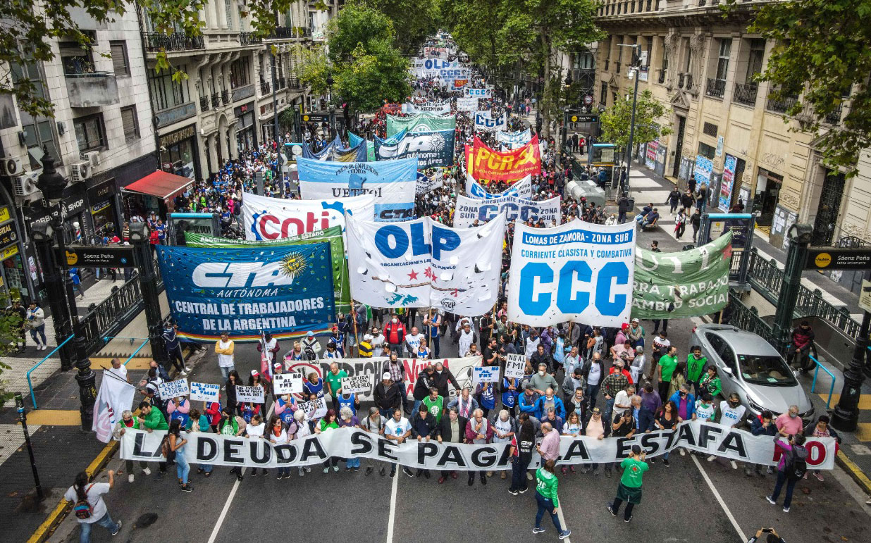 Una multitud se concentró hoy en Avenida de Mayo y 9 de Julio para movilizar al Congreso Nacional. Entre las organizaciones convocantes a la movilización estuvieron: la CTA Autónoma; CCC; UTT; PyMES para el Desarrollo Nacional; OLP; Manifiesto Argentino; Unidad Popular; Soberanxs; PTP- PCR; Causa Nacional; PC; FIPCA y Grupo Bolívar. También participaron FeTeRA y el Frente Darío Santillán.