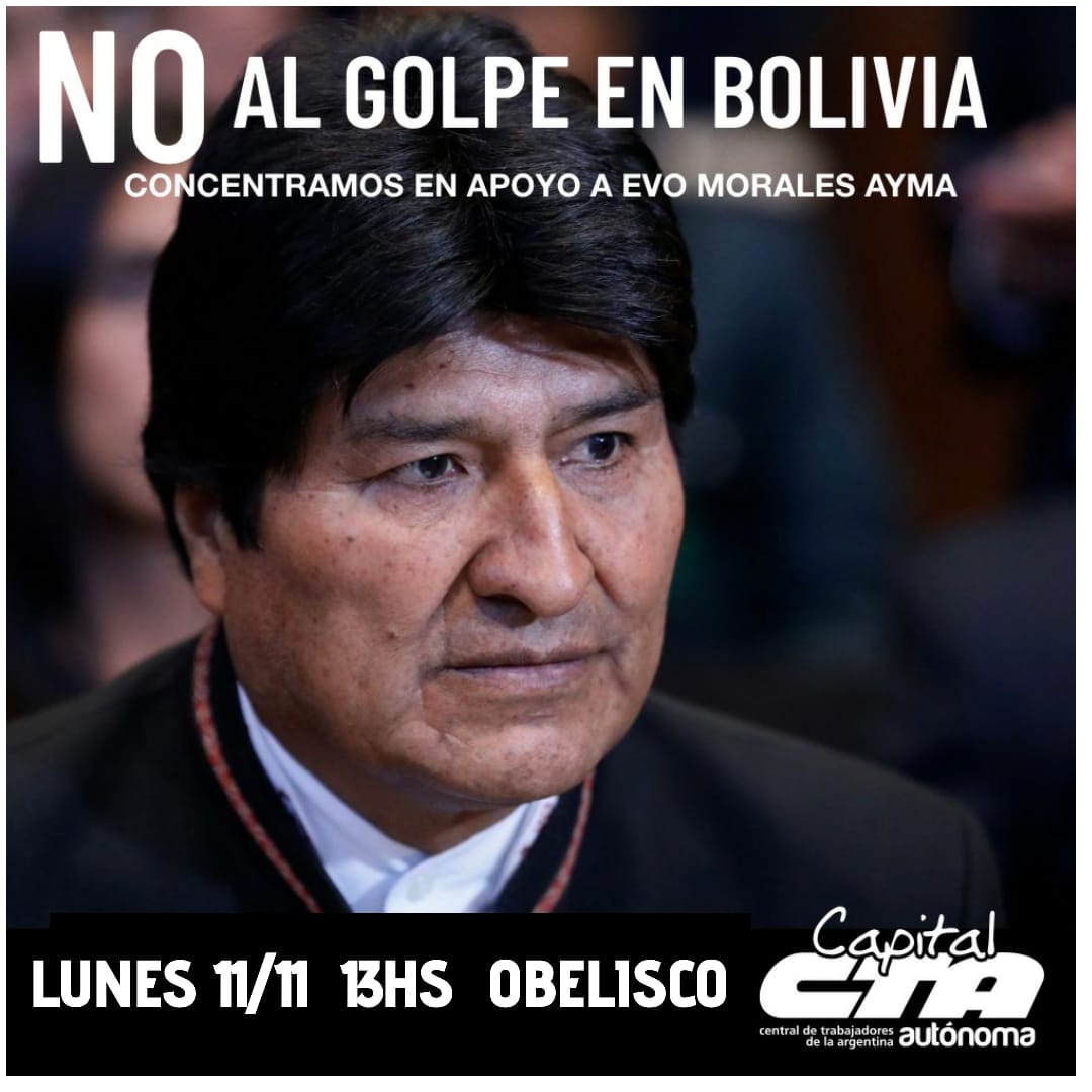 “Frente a la triste noticia del Golpe de Estado contra el presidente Evo Morales, el pueblo argentino y sus organizaciones nos movilizamos para defender la democracia y la paz en nuestro continente.