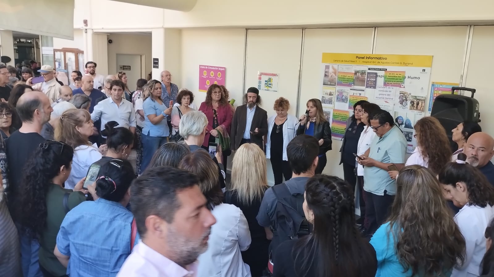 Ante la cantidad de gente, la radio abierta se trasladó a la explanada de acceso principal, donde representantes de distintos hospitales, agrupaciones vecinales y demás concurrentes tomaron la palabra en solidaridad con las y los trabajadores del Durand.