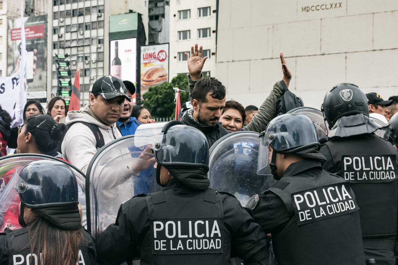 Sumó su voz, Dina Sánchez vocera del Frente Popular Darío Santillán, quien expresó: “Venimos desde el lunes instalando todas las necesidades que estamos pasando en los barrios más olvidados. Hoy en el Obelisco, arrancamos una jornada en la que vamos a armar ollas populares para visibilizar todas las necesidades que tenemos en los comedores como la falta de alimentos y contención para todos los niños y niñas. La respuesta del gobierno a ello, fue la represión. Hace un momento, reprimieron y golpearon a los compañeros y compañeras. A una de ellas, la arrastraron sin importarles absolutamente nada. No les importó que hubieran compañeras con niños o personas mayores. Frente a las necesidades que el pueblo estamos pasando, el gobierno no sólo hace oídos sordos sino que nos reprime, aún en una protesta pacífica como la de hoy. Venimos a reclamar nuestros derechos que hace tiempo son pisoteados”