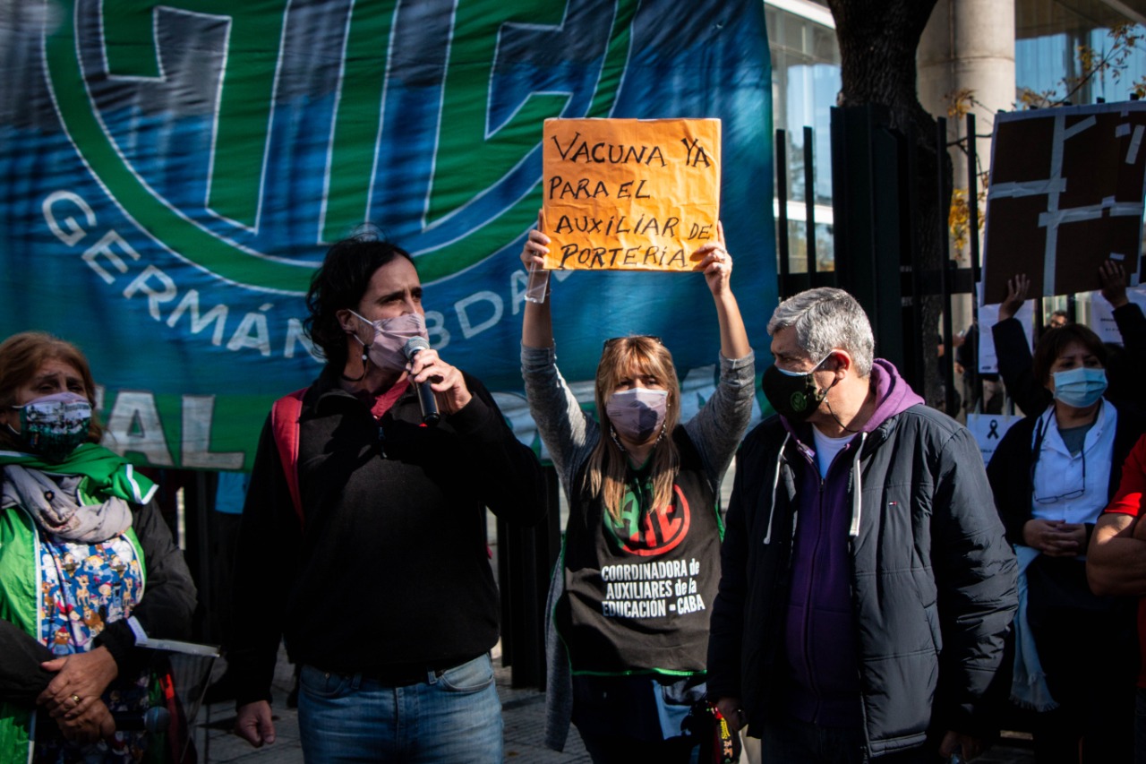 Para finalizar, el dirigente porteño hizo extensivo el abrazo, el saludo y la solidaridad de la central porteña hacia los sindicatos docentes que hoy están al frente peleando contra lo que él llamó “este modelo de desigualdad de Larreta y sus políticas de desidia”, al tiempo que saludó a las y los Auxiliares de la Educación, que también se hicieron presentes y continúan exigiendo ser incluidos en el calendario de vacunación para no seguir perdiendo compañeras y compañeros.
