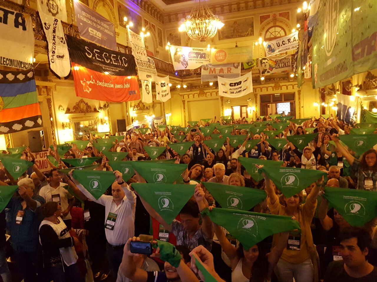 Finalmente el Congreso se tiñó de verde con los pañuelos que levantaron en alto los compañeros y compañeras en lo que fue la ratificación de la lucha de la Central por este derecho.