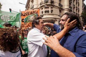 “Las movilizaciones comenzaron en el día de hoy, aquí en la Ciudad Autónoma de Buenos Aires, acompañando desde ATE a los trabajadores docentes al Palacio Pizzurno, y entre hoy y mañana realizaremos movilizaciones en las distintas provincias. Este plan de lucha que venimos llevando adelante desde ATE, siendo este el tercer Paro del año, demuestra la voluntad de los trabajadores estatales de exigirle al Presidente Macri la inmediata convocatoria a una paritaria nacional libre y sin techo que permita a los trabajadores estatales recuperar lo perdido y no ser la variable de sus políticas de ajuste que nos están llevando a una situación de abismo social”, señaló el Secretario General de ATE Nacional.