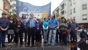 “Es una alegría poder estar hoy en la calle conmemorando el 1° de mayo. Un día muy especial, en un tiempo muy especial, porque es importante que sea en la puerta de la CTA, pero sobre todo que sea en la calle, como venimos diciendo acto tras acto, como viene diciendo Pablo Micheli en todos sus reportajes y en sus consignas, es importantísimo mantenernos y recuperar la calle para los trabajadores. Es importante estar acá para potenciarnos, para darle el marco de unidad en acción, el marco de continuidad de un proceso que arrancó allá por el 2012, aquel 20 de noviembre, que los trabajadores supimos dar un paso adelante y convocar a ese gran Paro, que a mi criterio, fue el más importante, porque marcó un antes y un después y condicionamos a las demás centrales a que adhieran y que salgan de una vez por todas a luchar por las necesidades de los trabajadores.”, expresó José “Pepe” Peralta, sobre el escenario ubicado en la Avenida Independencia.
