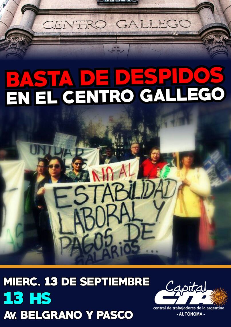 El Centro Gallego de Buenos Aires es una de las más importantes Instituciones Gallegas de esas características en el mundo entero, y de actuación más que centenaria en la Argentina y las políticas adoptadas por quienes la administran tienen como objeto su cierre y desguace.