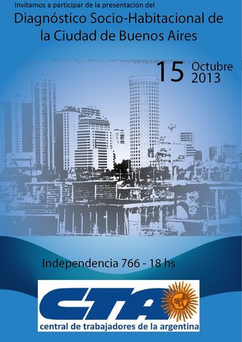 El próximo martes 15 de octubre a las 18 horas en la sede de la CTA Capital (Avenida Independencia 766) la compañera Carla Rodriguez, del Movimiento de Ocupantes e Inquilinos (MOI-CTA) presentará a los compañeros de la Mesa Ejecutiva de la Central porteña y a todas las organizaciones que la integran, un primer informe sobre la situación de vivienda en la Ciudad de Buenos Aires. Tanto el trabajo como la presentación estará a cargo de Carla y un equipo de compañeras que lo elaboraron.