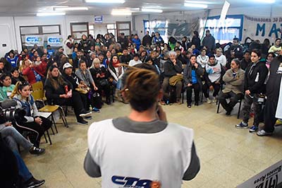 Omar Giuliani, que será el Coordinador de la FeNaT cerró el encuentro pidiendo un aplauso para el compañero Mario Barrios, secretario de Acción Social, y quien atravesó toda la tormenta de los últimos años: “Hoy puede ser un momento histórico de la Central. Para nosotros la CTA no es una sigla, es la defensa de la democracia sindical, del territorio. Cuando decíamos que el hambre es un crimen fuimos capaces de conformar esa Central. Y mientras algunos creen que hay que volver a la CGT y la estrategia del PJ, nosotros nos animamos a refundar nuestra herramienta, desde nuestro territorio”.