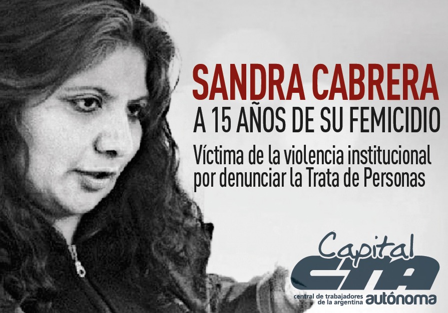 “A Sandra la mataron en el 2004. El año anterior, había sido una de las organizadoras del Encuentro Nacional de Mujeres (ENM) que se hizo en la ciudad de Rosario. La compañera Mabel Gabarra, secretaria de Género de la CTA Nacional de ese momento, trabajó mucho con Sandra durante ese Encuentro. Ella peleó y logró que nuestro taller dejara de llamarse ‘Prostitutas’ y pasara a ser ‘Trabajadoras sexuales’ y también se formó el taller ‘Mujer en situación de prostitución’”, recordó Jorgelina, como otro de los logros de la lucha de Sandra Cabrera.